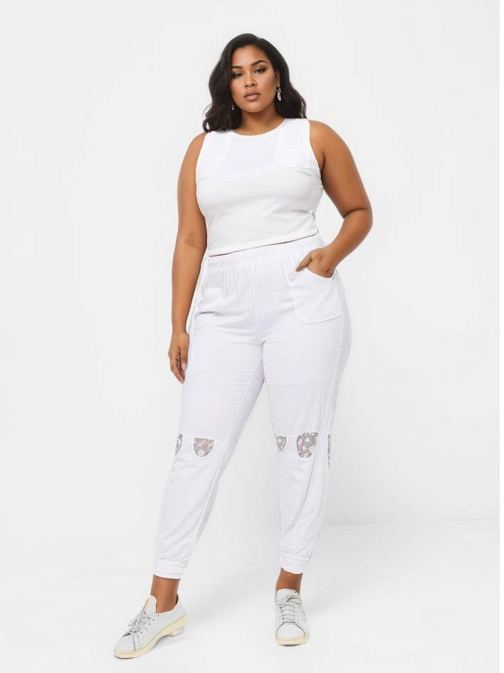 Stora joggingbyxor med spets vit (B83) L(42/44) XL(46/48) XXL(50/52)