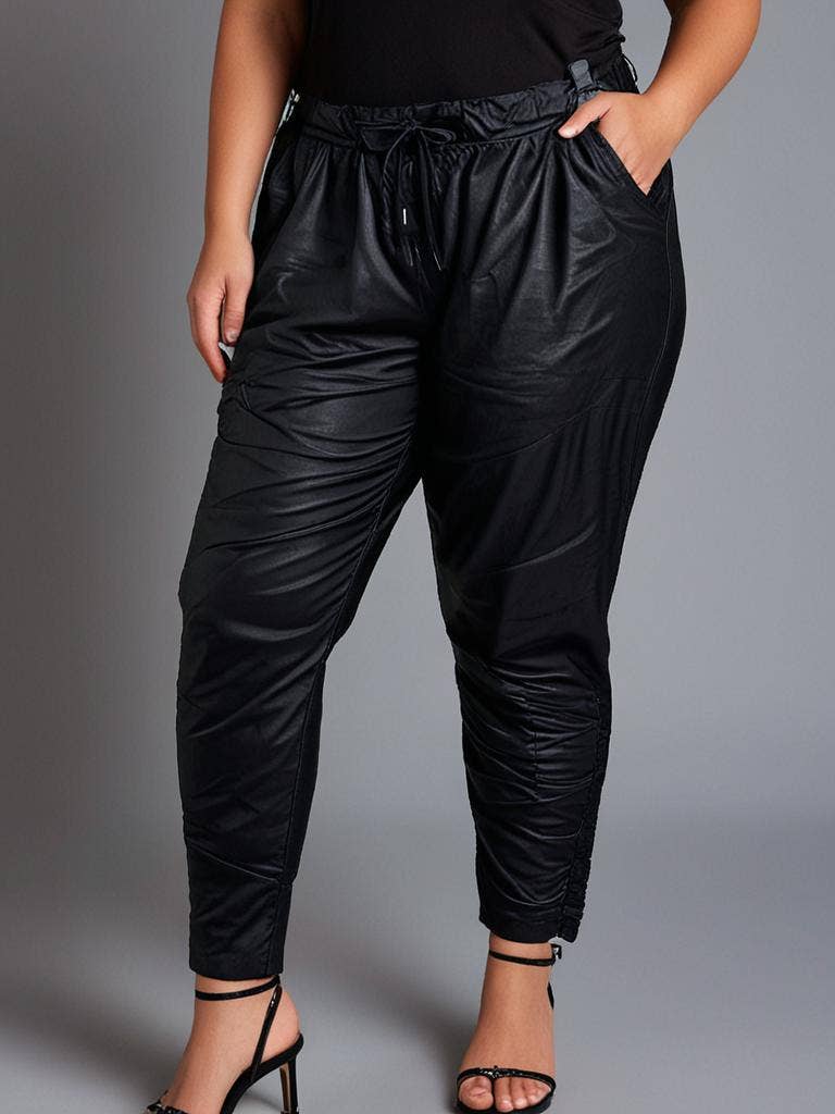 Belagd byxa i stora storlekar med plisserad effekt, svart färg (T6747)