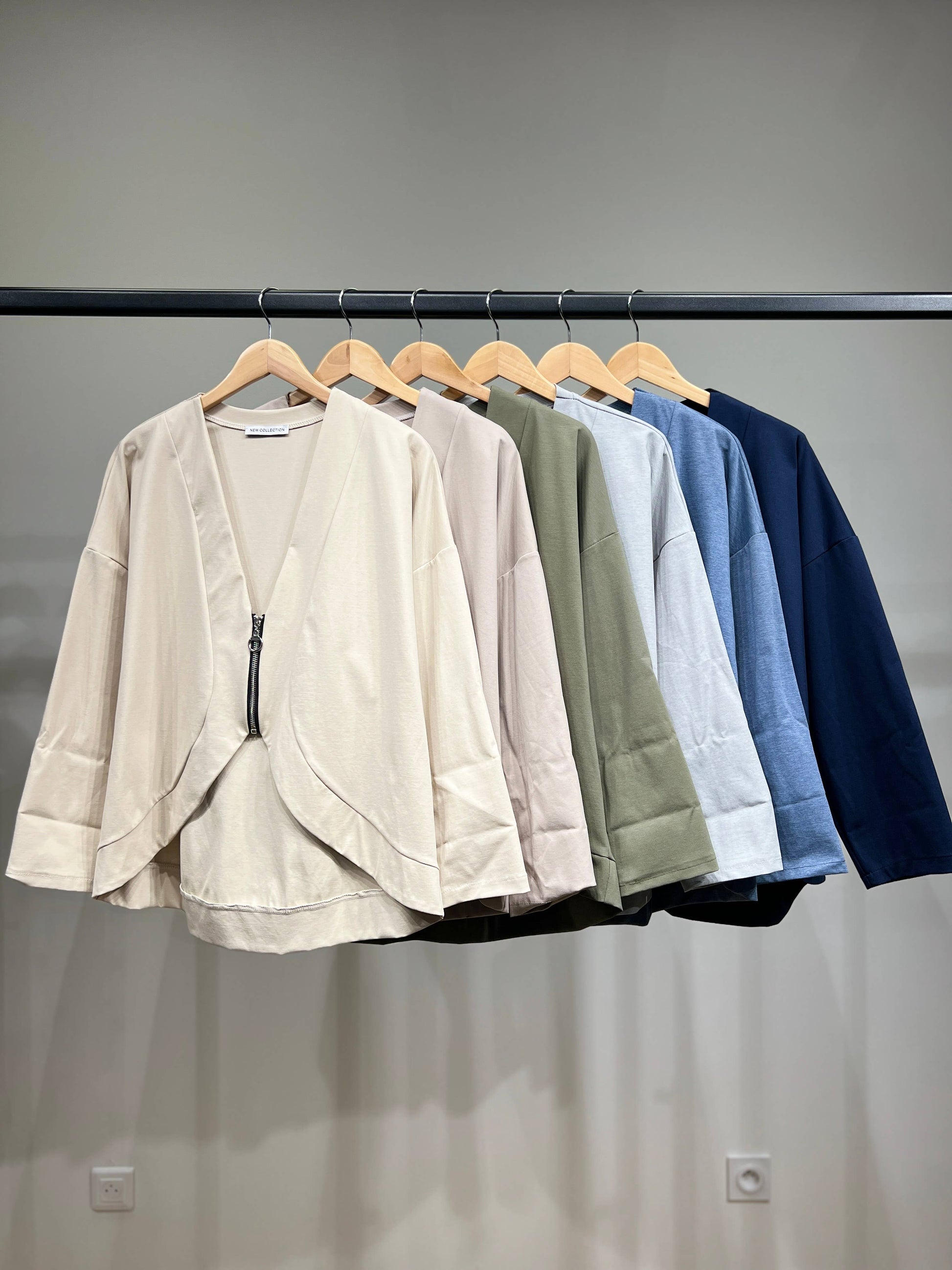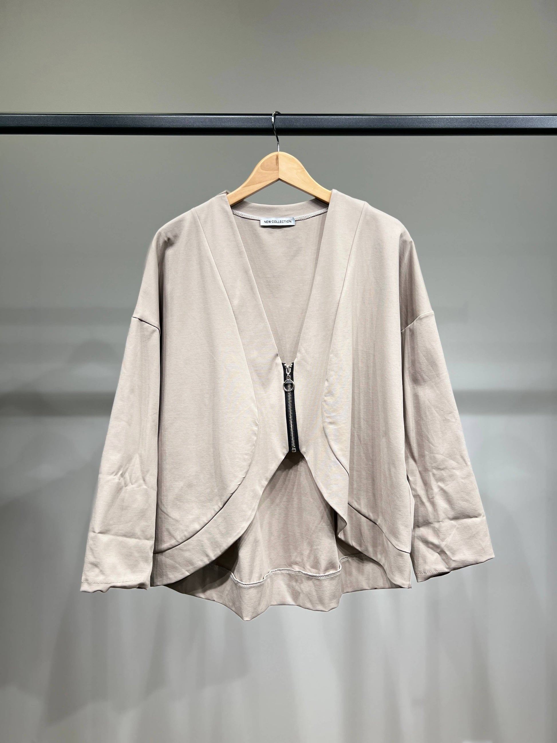Kort dragkedjetröja med V-ringning i bomull/nylon i onesize storlek som passar Storlek 36-46