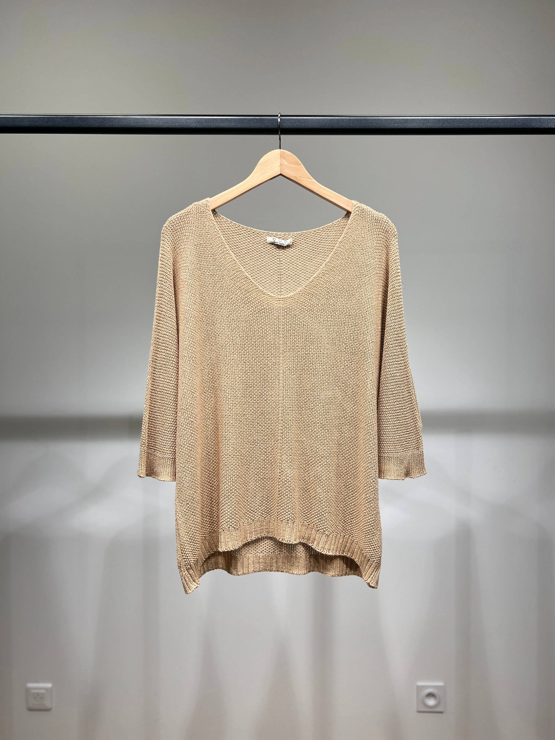 Akryl modal glänsande tråd V-hals stickad tröja i one size storlek som passar st 38-48