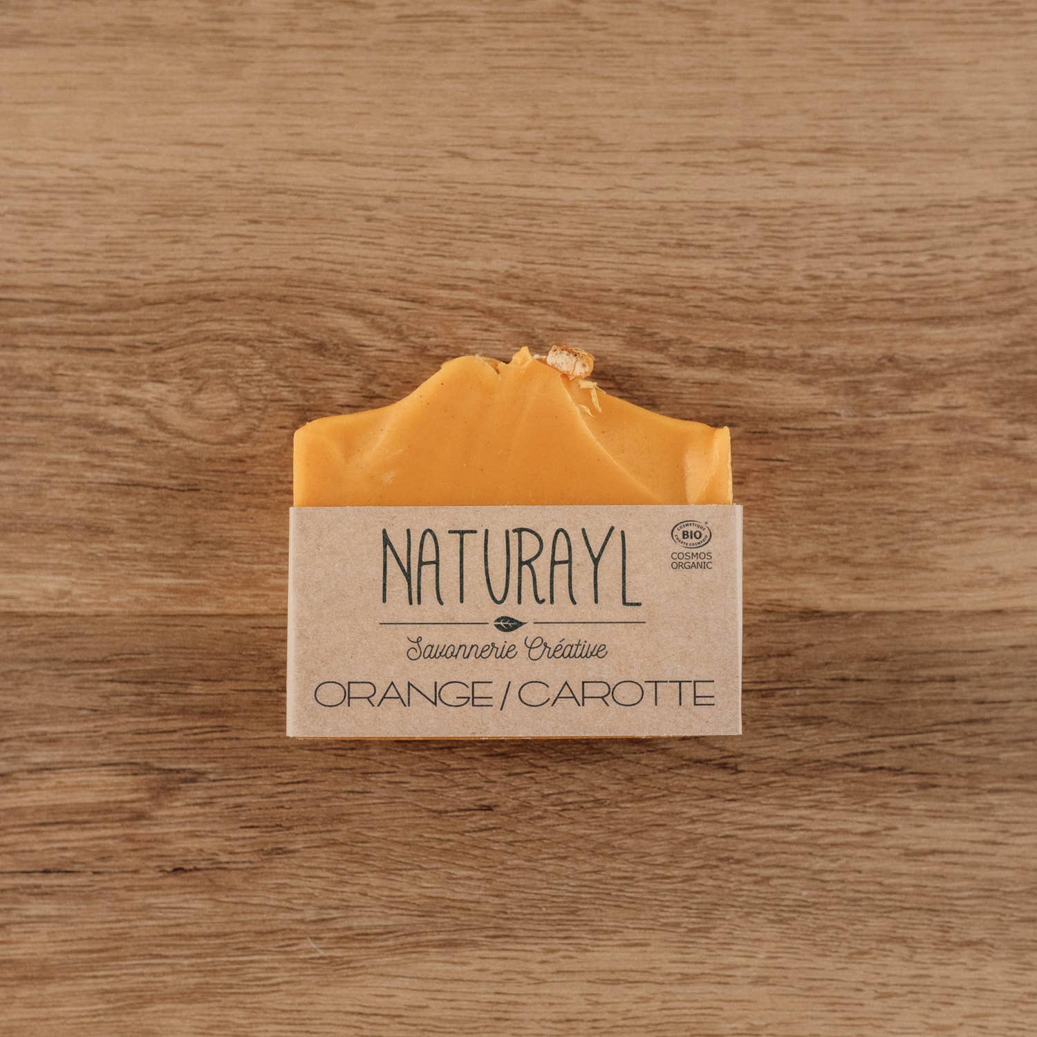 Kall tvål, 9% surgras, berikad med morot macerate, urucumpulver och söt apelsin eterisk olja.