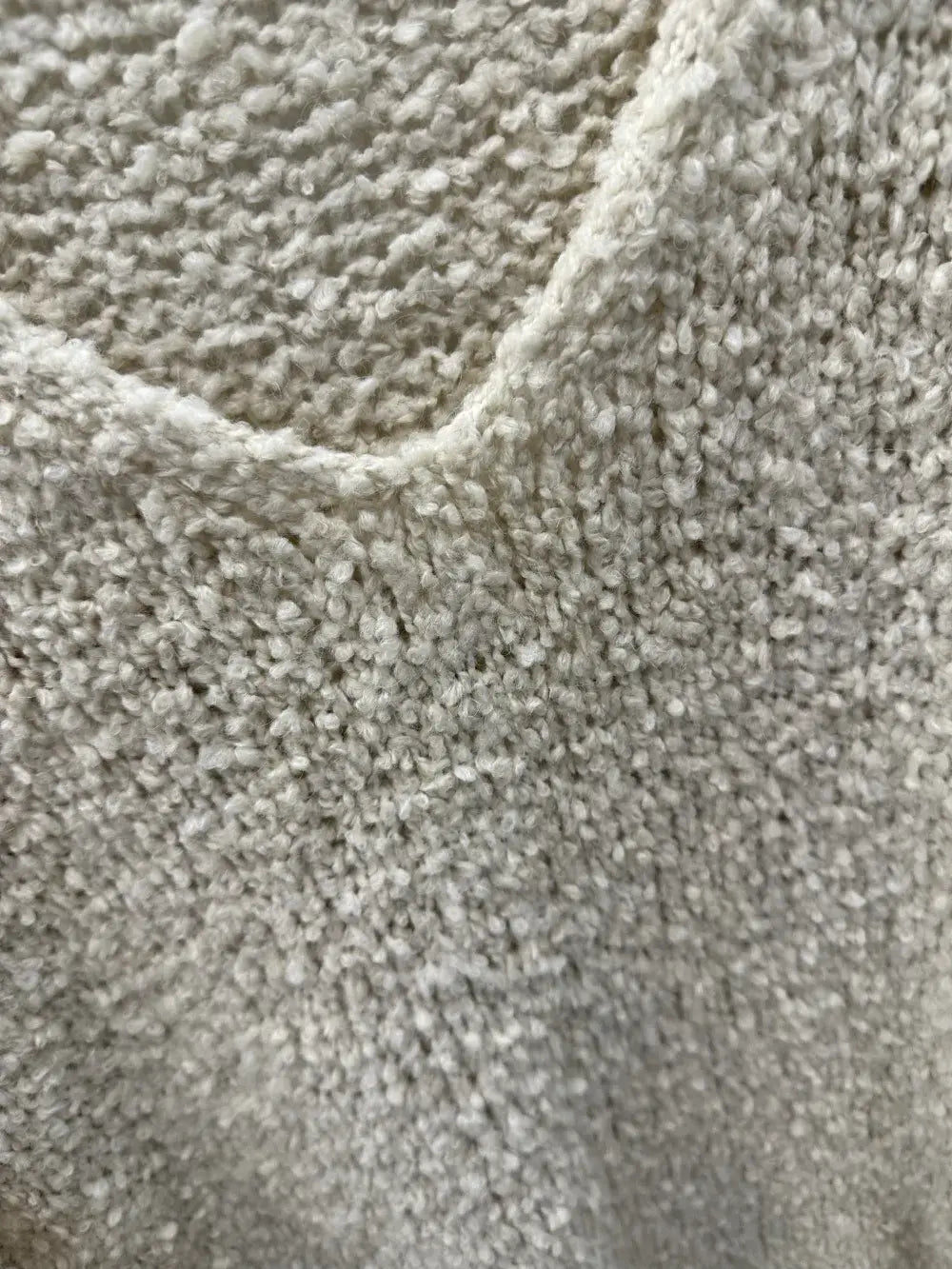 Sammansättning: 62% akryl 8% viskos 8% ull 18% polyester 4% alpacka. Överdimensionerad tröja i ull och alpacka, en storlek, passar storlek 36-42.