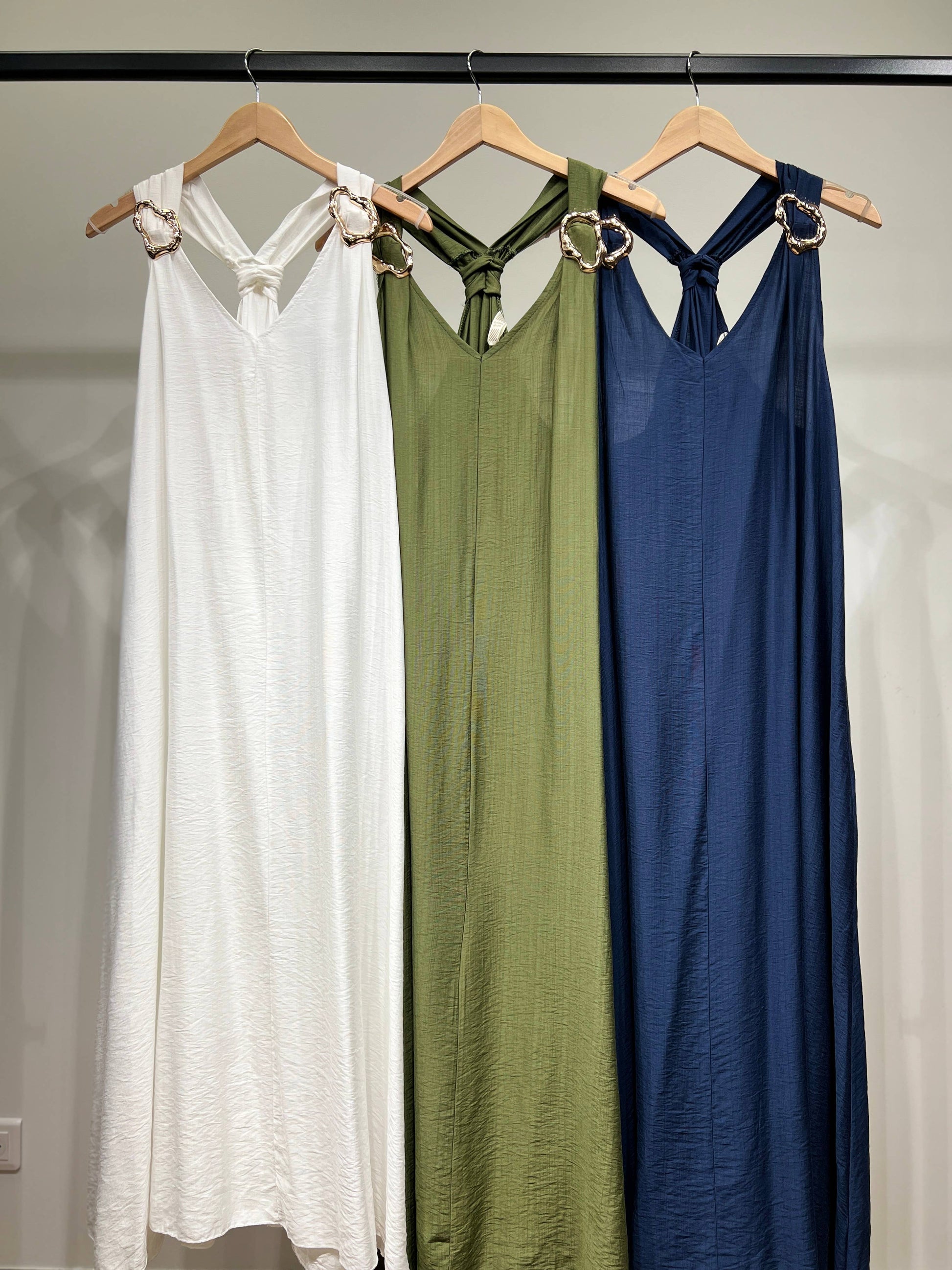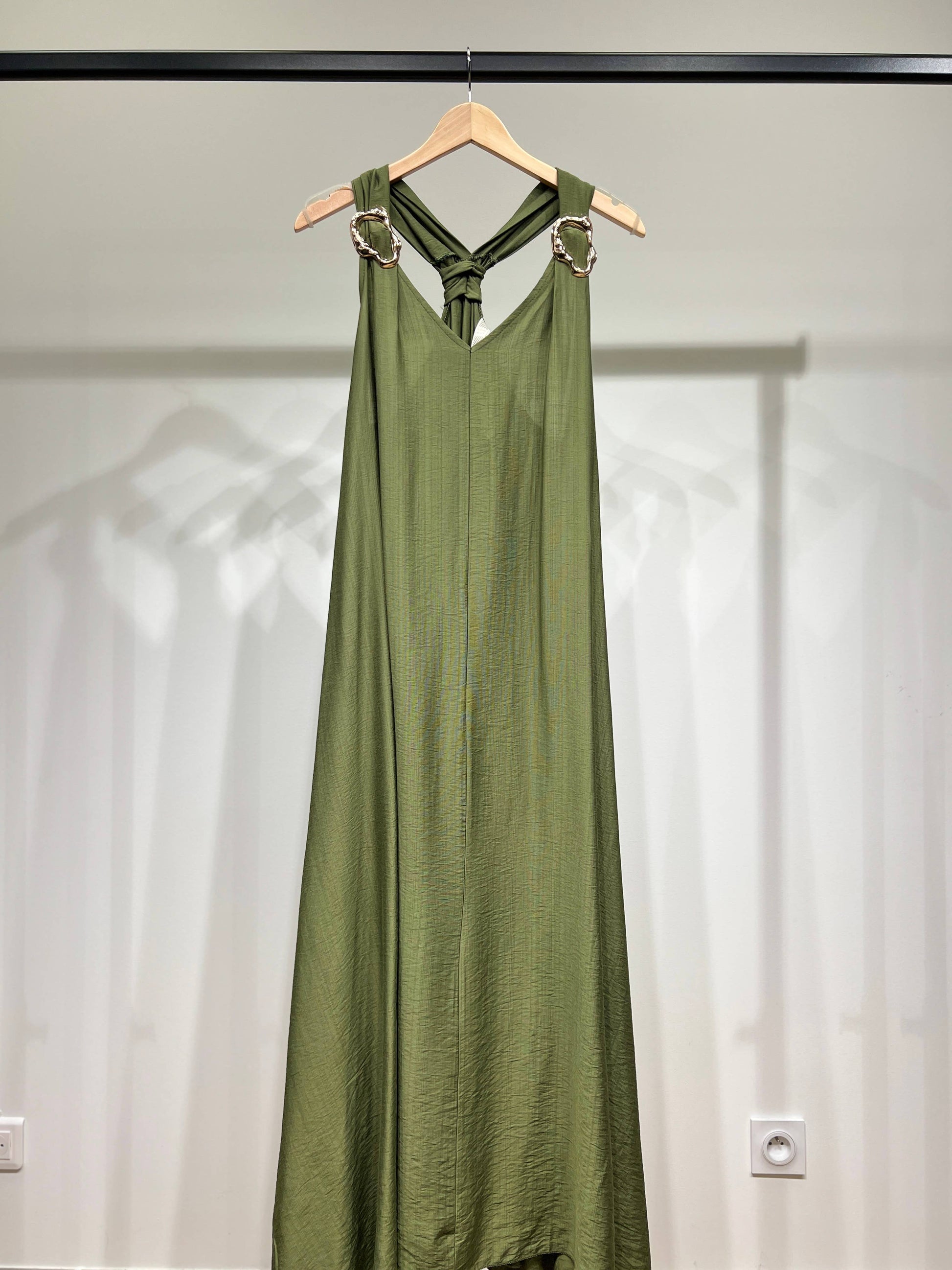 Racerback-linneklänning med dekorativt gyllene spänne One size passar storlekar 36-44
