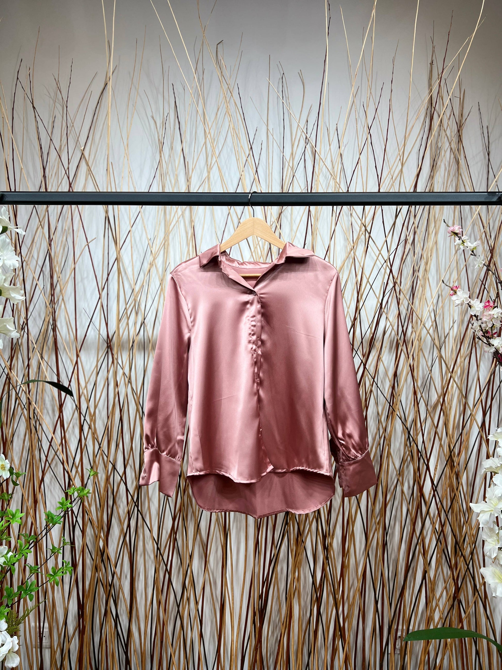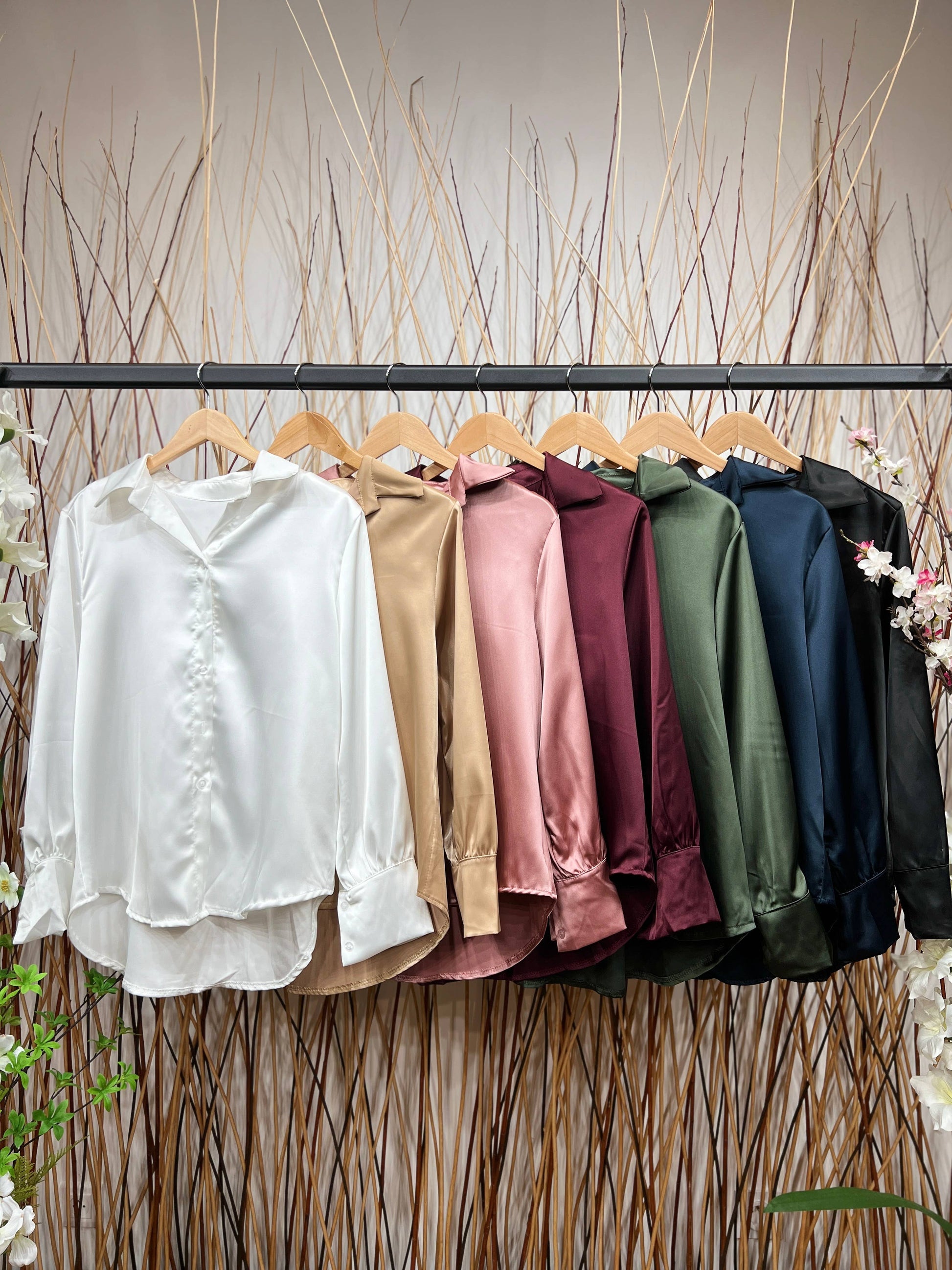 Rak enkelärmad knäppt satinskjorta - 2 färger