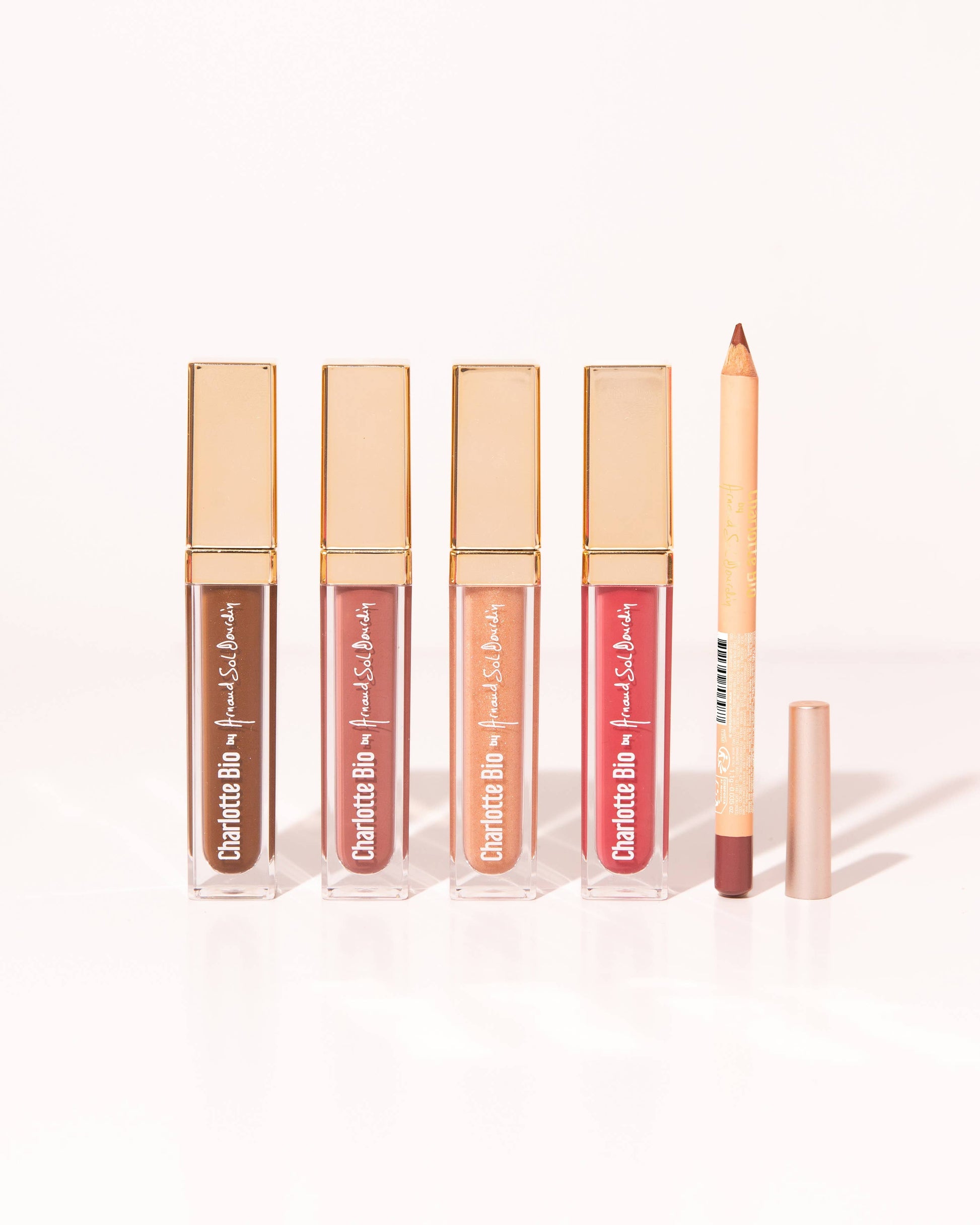 Resultatet av samarbetet mellan Charlotte Bio och Arnaud Sol Dourdin, Lip Liner Nude Rose, omformar läpparna med naturlighet och precision. Dess universella nude-nyans harmoniserar perfekt med de 4 nyanserna av Lip Glow, för en strålande finish.