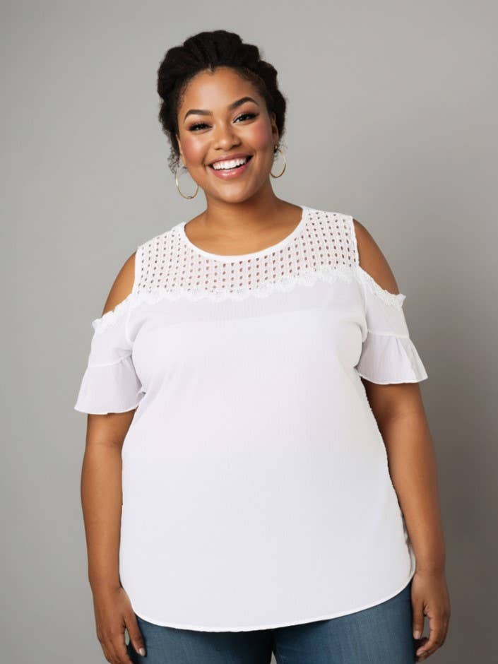 Vit topp med spets i stora storlekar med pärlor (A958)
